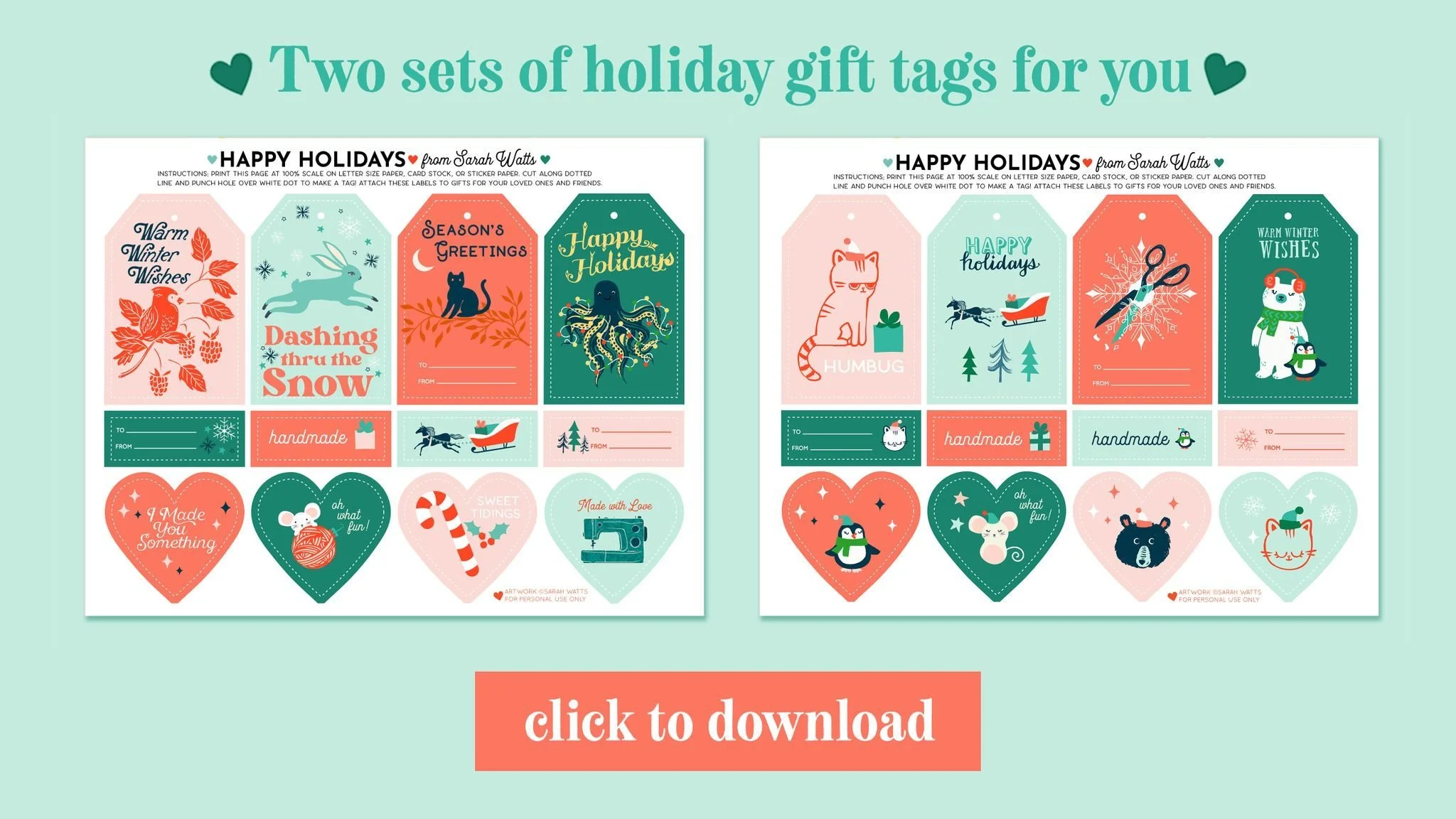 Free Holiday Gift Tags - Sarah Watts